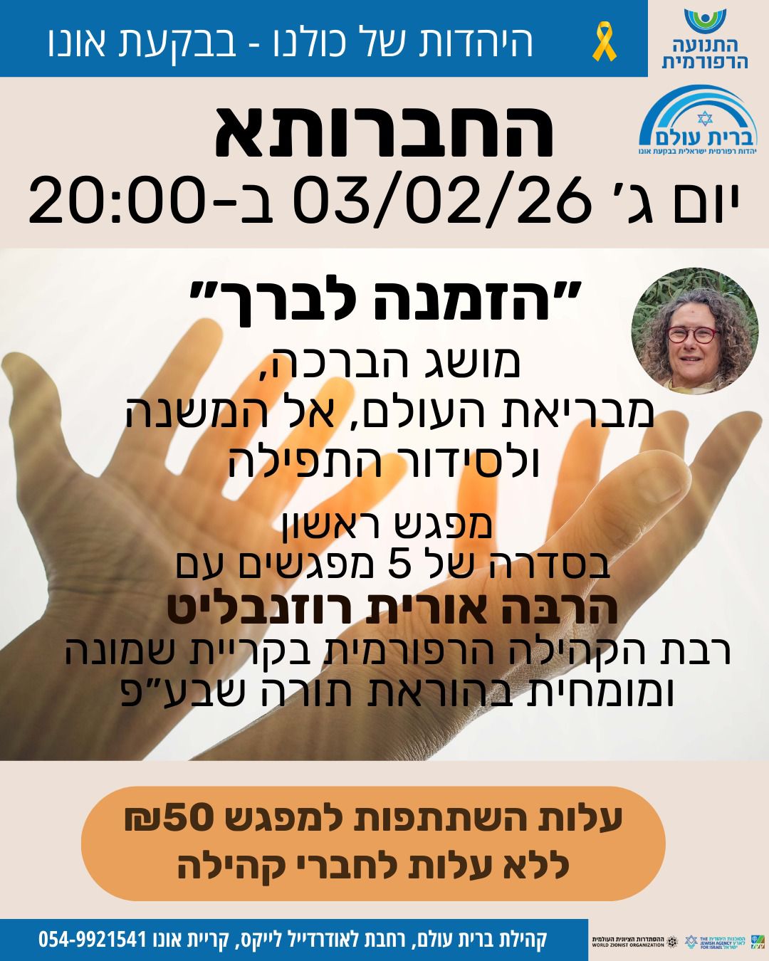 פרטים אצל ננסי, רכזת הקהילה: 054-9921541